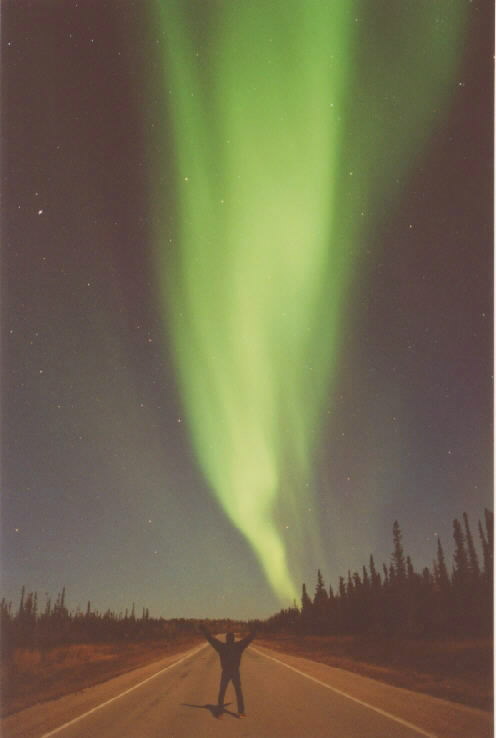 This was taken October 5, 2003, from Alexandra Falls, Twin Falls Gorge Territorial Park, Northwest Territories. The three quarter moon has illuminated one side of the Hay River gorge. Photo details: Fuji Superia 400, 24 mm, f 1.8, exposed for 30 seconds.