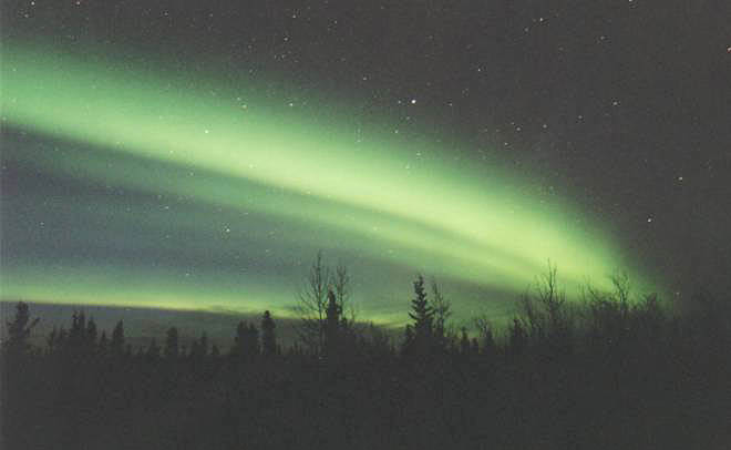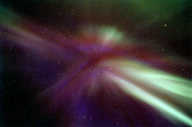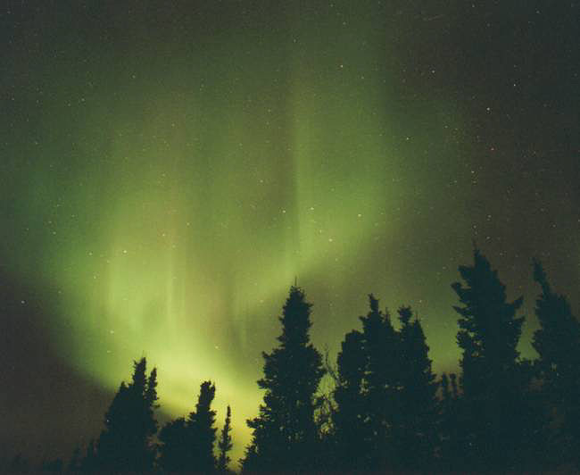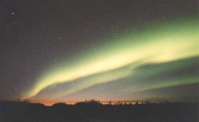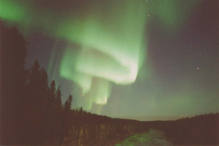 This was taken very early on October 4, 2003, beside Alexandra Falls on the Hay River in the Twin Falls Gorge Territorial Park, Northwest Territories. Photo details: Fuji Superia 800, 24 mm, f 1.8, exposed for 30 seconds. John