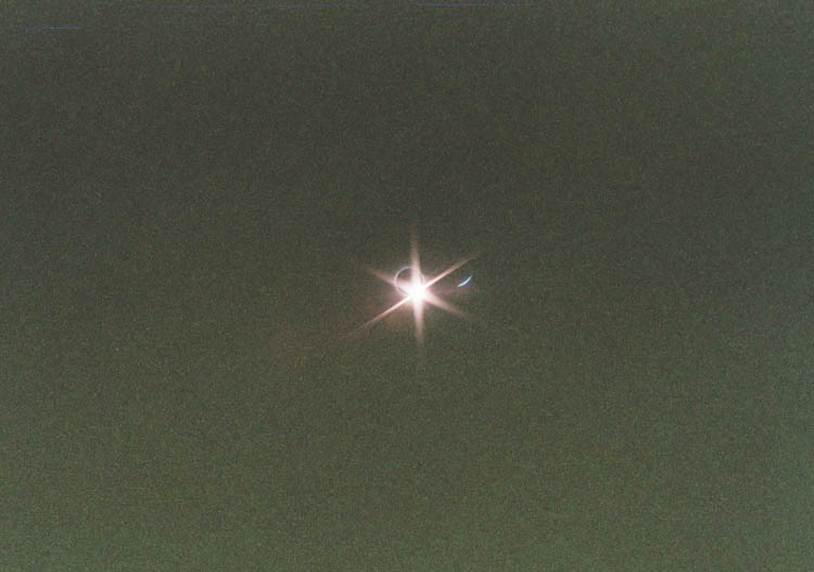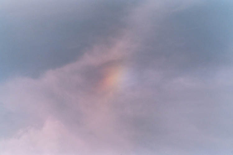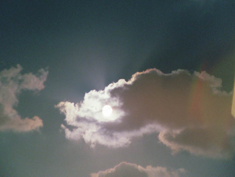 coronae, under a partly cloudy sky. As the Sun passed through transparent