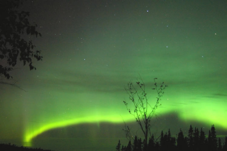 This aurora borealis with purple colors over St-Vallier near to Quebec city Canada captured in april 9 2006 at 4 h 40 am after a painful hunting through a very cloudy night Pentax istDS lens 18mmGilles Boutin Lévis Québec Canada |