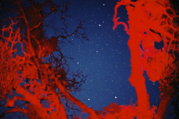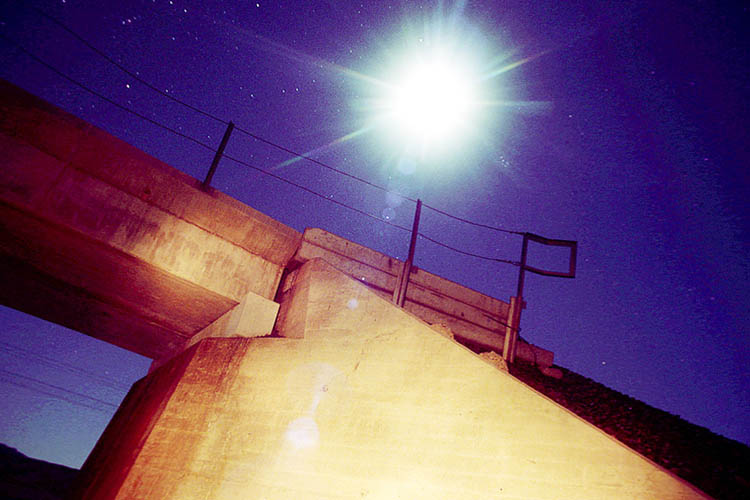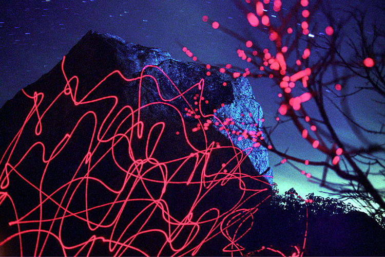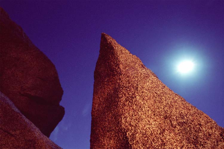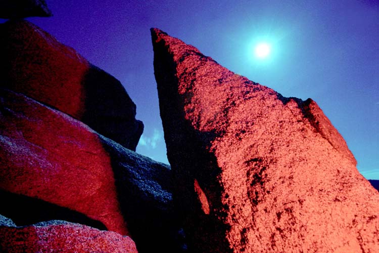and blue filters used to paint the rocks. 8 minute exposure at f4. Nikkor 17-35mm at 17mm. Kodak SUPRA 800 color negative.