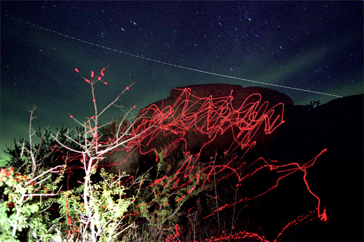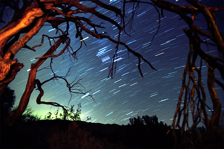 Trails and meteor or shooting star, shot at the Tamarisk Grove