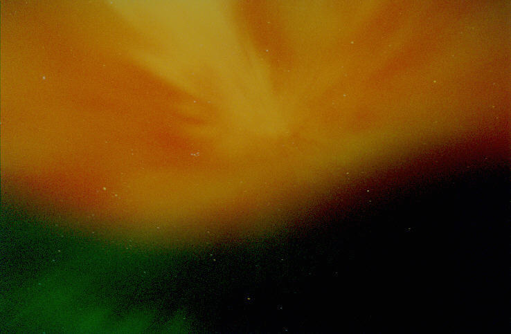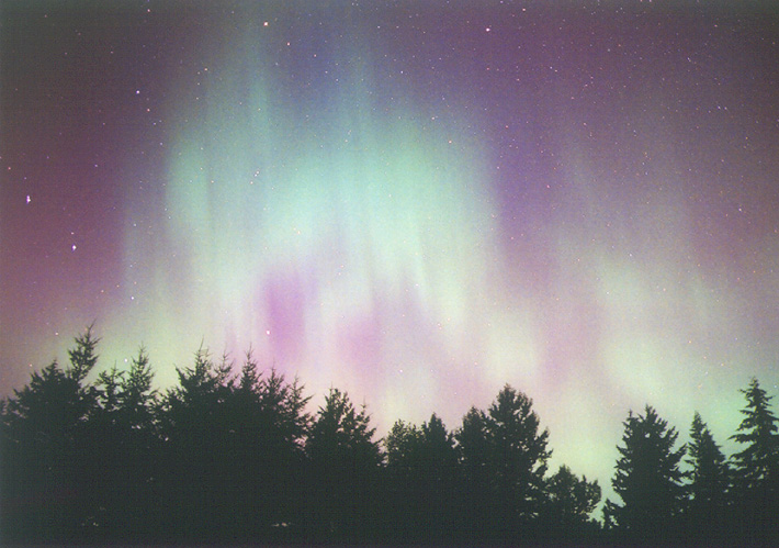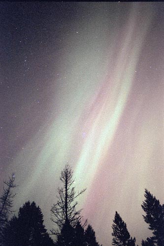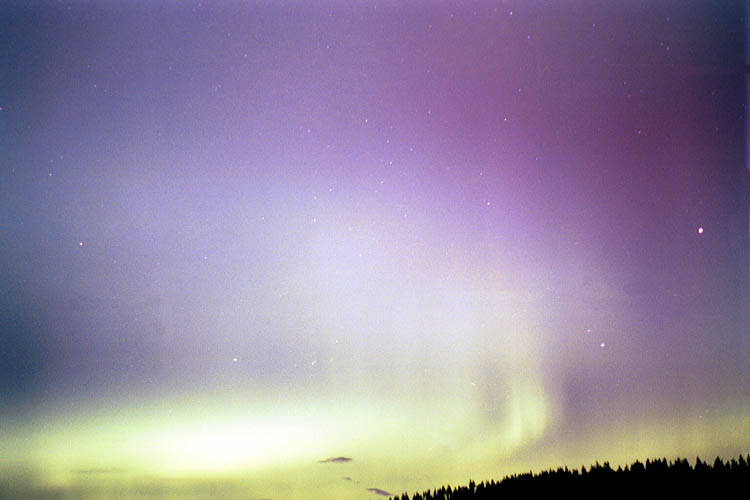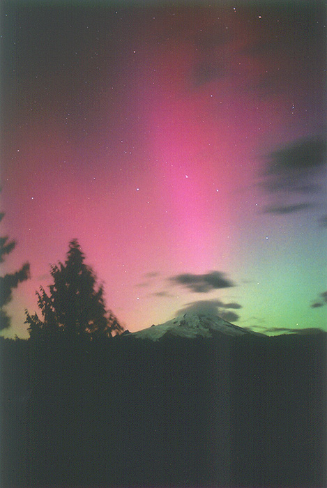 Aurora, August 17, 2003 from Hamilton, Washington, USA. You can see the rayed bands over Mt Josephine even though the photo is overexposed.Wade B Clark Jr - Hamilton, Washington, USA |