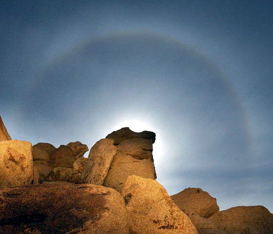 I took this photo April 8, 2003 on the the frozen Knik River near Palmer, Alaska. This photo reminds me of those illustrations of alien planets that you see in science fiction books and magazines. I used a Canon EOS 10D set at ISO 800. Although the moon was actually only falf full, the 8 second exposure makes it look full.e-mail to: Scott McGee |