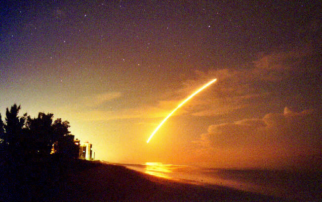 This is a photo of the Space Shuttle Columbia's last visible pass over Indiana