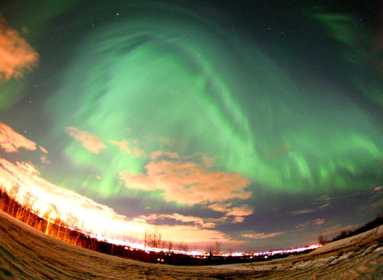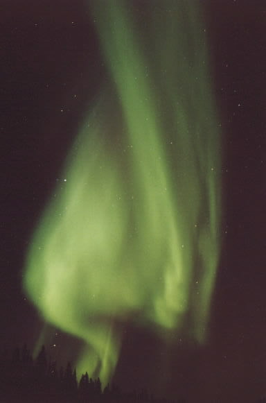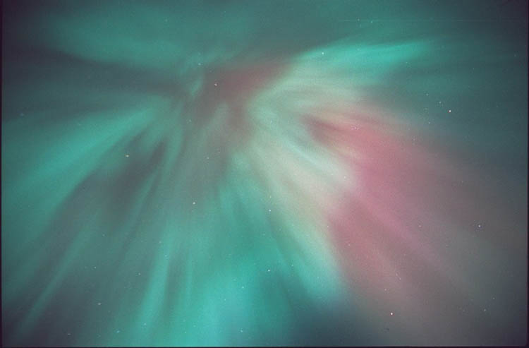 2004/01/25 brief auroral display at 01:00. The temp was around 0 degrees in Two Rivers, WI. This bright curtain shot across the horizon, and faded again 15 minutes later. I was lucky enough to be driving through a rural area with a camera & tripod handy. Canon G2 digital, ASA 400, f 2.0 for 15 sec.See more photos by: Peg Zenko |