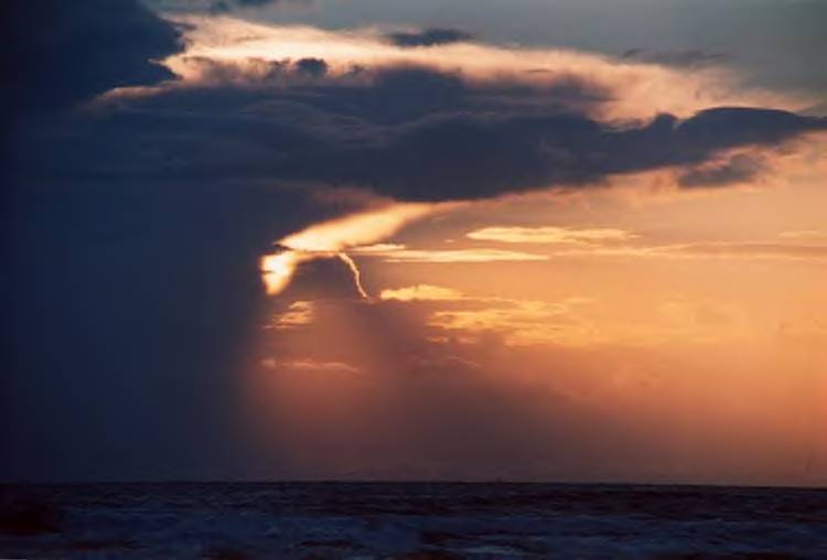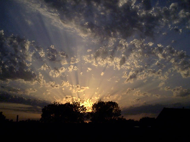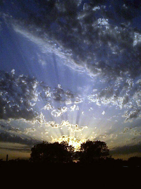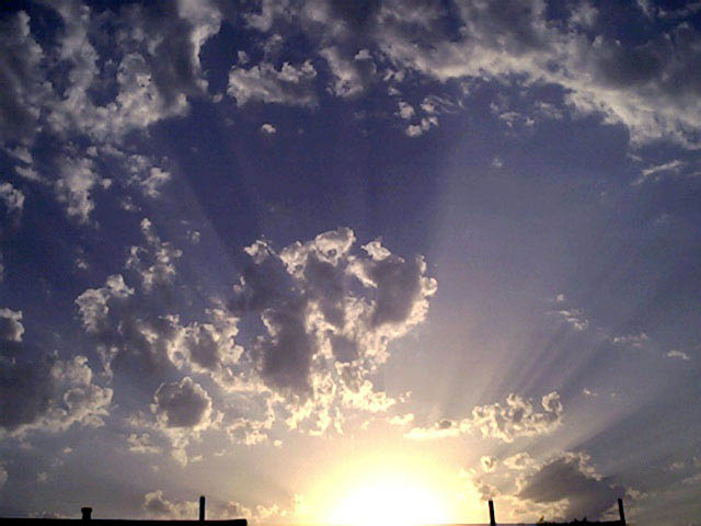 "Cloudburst" of evening crepuscular rays over the water of Green Bay. Taken with a Canon G2 digital on 2003/09/24.e-mail to: Peg Zenko - Green Bay, WI USA |