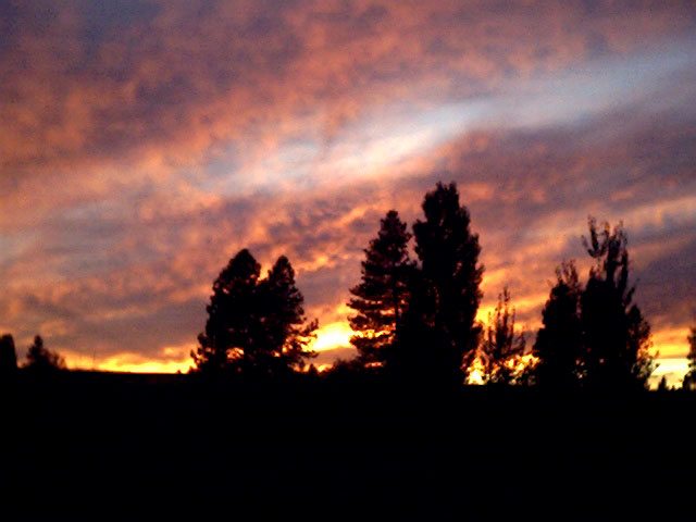 Photo of this morning's (Oct 18, 2003) sunrise over the Skagit River in northwest Washington State, USA. Taken with an Olympus C-730 Ultra Zoom digital camera, and underexposed 1.3 stops from the metered reading.e-mail to: Wade B Clark Jr |