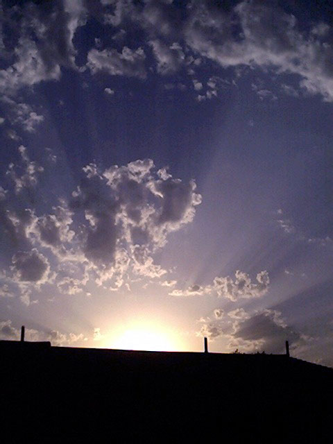 This is a picture I took in April of 2002. I was awakened at 5 AM by my husband to come look at the sunrise. As you can see, it was worth being woken up for!e-mail to: Prairie Wind Stock |
